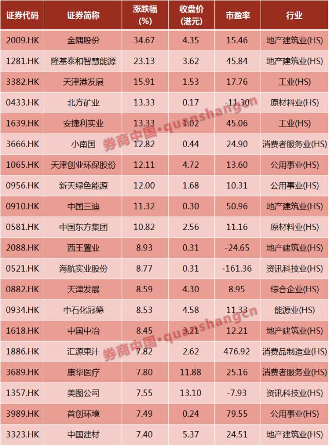 河北省最大的天然气分销商,亦是河北省最大的风电运营商的新天绿色能源(0956.HK),开盘上涨24%,收盘上涨12%。
