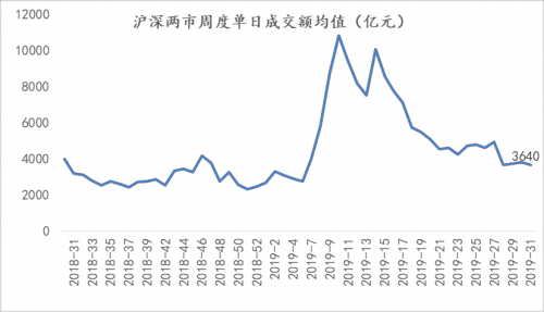 市场成交额:市场缩量下行,近一周沪深两市单日成交额均值为3640亿元。