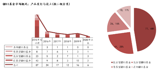 图表 2:历年QDII基金成立数量和各类基金分布