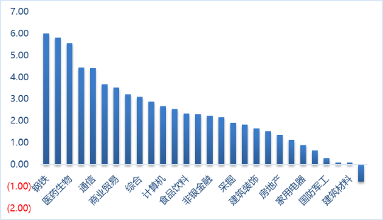 图 1 行业涨跌幅(%)