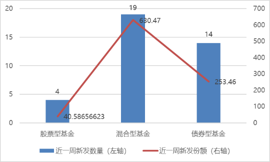 上周共有37只基金公告成立(主代码口径统计,下同),其中股混型基金共计新发份额671.05亿份。