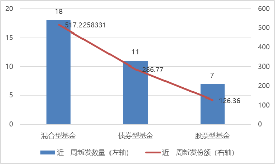 上周共有36只基金公告成立(主代码口径统计,下同),其中股混型基金共计新发份额643.58亿份。