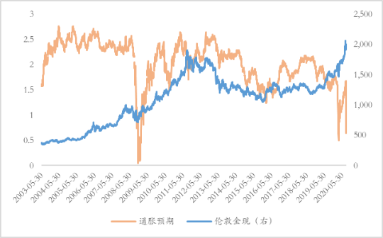 图 4 黄金与通胀预期关系