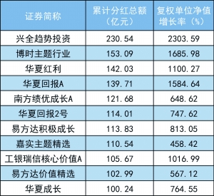 Wind数据统计显示,截至2020年9月2日,分红次数超过40次的混合型基金有华夏回报A、宝盈核心优势、华夏回报2号、富国天成红利、兴全可转债和易方达策略成长。其中,华夏回报A成立以来累计分红多达95次,分红金额近140亿元。