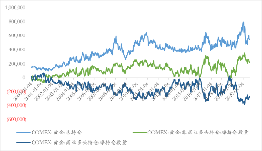 图 8 COMEX黄金总持仓与净多头持仓