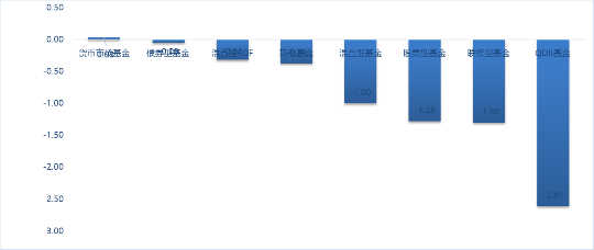 上周混合型基金平均业绩为-1.00%,其中避险策略混合型基金、绝对收益目标混合型基金、灵活配置混合型基金、偏股混合型基金、偏债混合型基金、平衡混合型基金、特定策略混合型基金的平均业绩分别为-0.45%、-0.56%、-1.01%、-1.38%、-0.21%、-1.20%和-0.92%。富荣价值精选灵活A以5.30%收益居首。