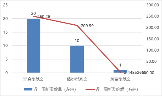 上周共有31只基金公告成立(主代码口径统计,下同),其中股混型基金共计新发份额252.71亿份。