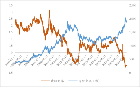 图 3 黄金与实际利率关系