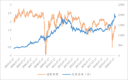 图 4 黄金与通胀预期关系