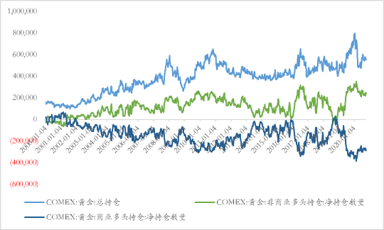 图 8 COMEX黄金总持仓与净多头持仓
