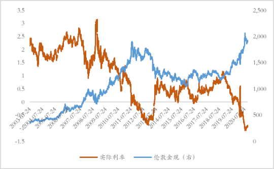 图 3 黄金与实际利率关系