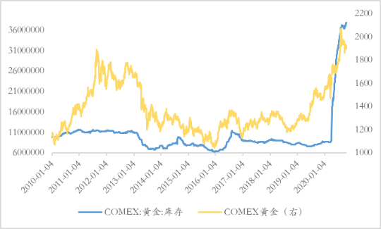 图 7 COMEX黄金库存与价格