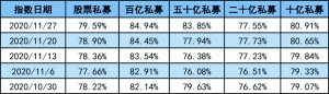 数据显示,截至11月27日,股票私募整体仓位指数为79.59%,环比上周提升0.69个百分点,至此,私募仓位已经连续第三周小幅上升。其中,百亿级私募仓位指数为84.94%,环比上周增加0.49个百分点。