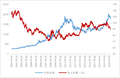 图1 黄金与美元指数走势