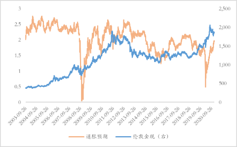 图4 黄金与通胀预期关系
