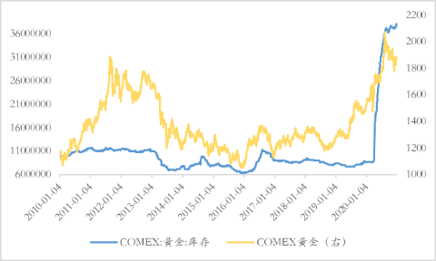 图7 COMEX黄金库存与价格